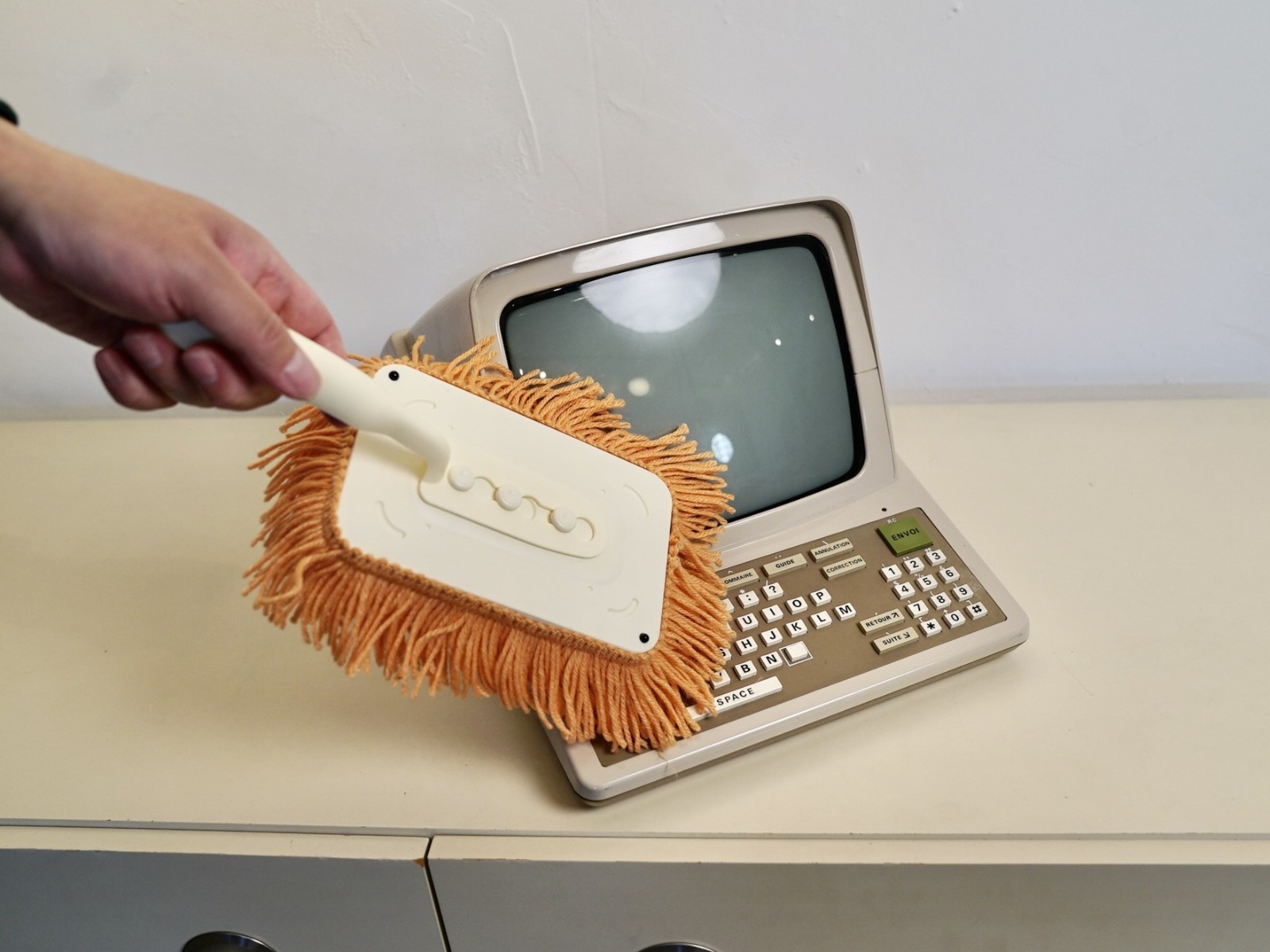 ハンディモップとしてあるべき姿を追及した、潔いまでの普通な佇まい。安心感を与えるその姿は、暮らしに寄り添う道具として、ひとつの完成形と言えるでしょう。しかし、一見すると平凡すぎるこの見た目こそが、爆走時のシュールな笑いを引き立てる計算されたデザインなのです。